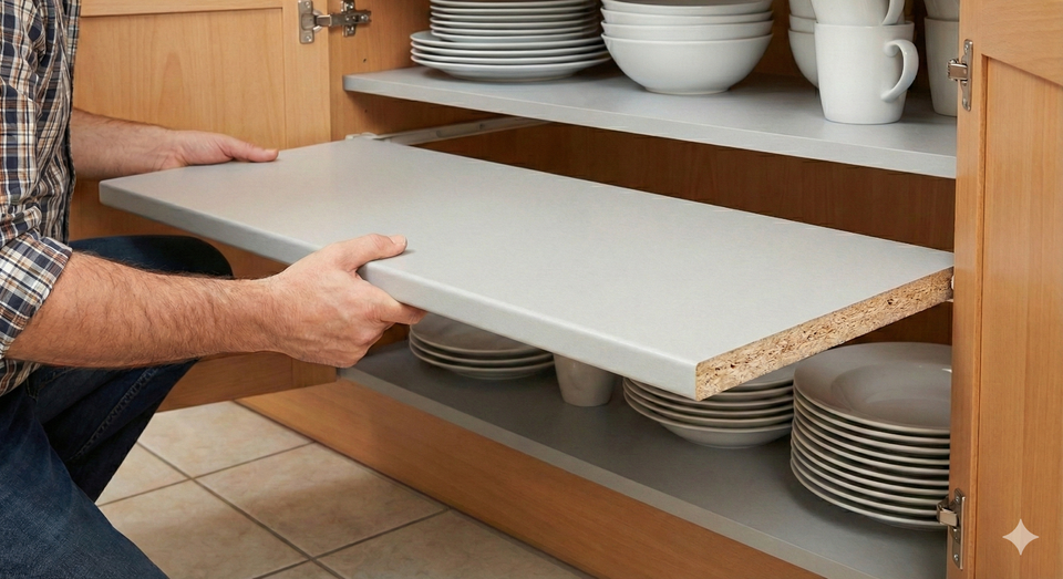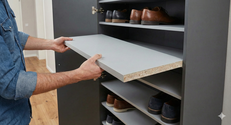 Bringen Sie Ordnung in Ihre Möbel mit unseren maßgefertigten Einlegeböden. Ob als Ersatz oder Ergänzung – unsere Böden bieten durch die 19 mm Materialstärke höchste Stabilität und langlebige Qualität für Ihre Schränke und Regale.